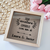 Medidas: madera natural 17 x 17cm x 5cm fondo/blanca 15x15cm. Material madera y cristal. Personalizado con vinilo. La personalización solo incluye los nombres y fecha.