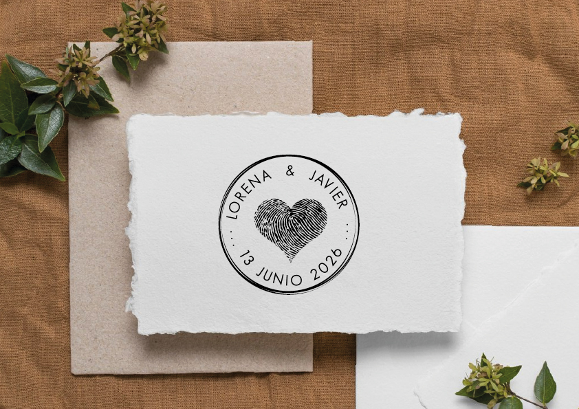 Para bodas con un toque rústico y natural, este sello es una excelente opción. Personaliza tus invitaciones y detalles de boda con los nombres de los novios en un diseño inspirado en la naturaleza. Hecho de caucho de alta calidad, este sello ofrece resultados perfectos en cada estampado.